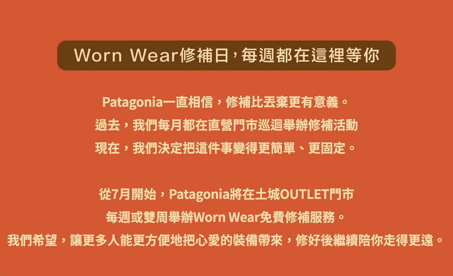 WORN WEAR 修補巡迴活動 ▎Patagonia 台中門市-8月23日