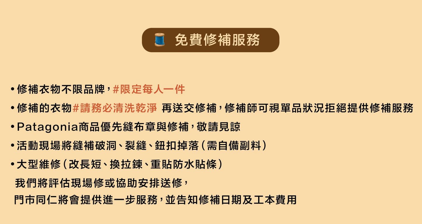 將 WORN WEAR 修補巡迴活動 ▎Patagonia 站前門市-10月11日 加到購物車