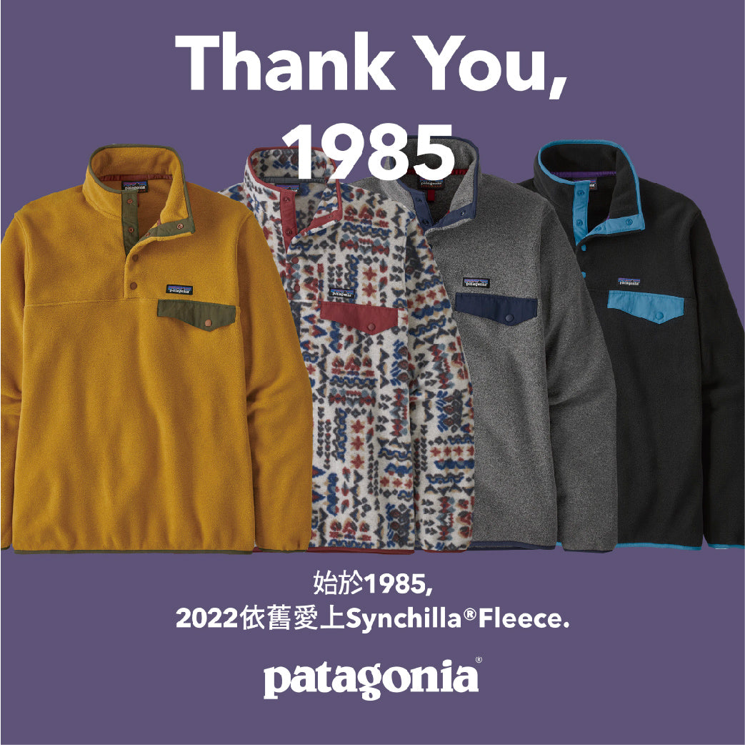 Synchilla® 保暖刷毛,始於 1985 年,Patagonia直到現在依舊用100%的回收保特瓶材質並且由公平貿易認證廠商所縫製。